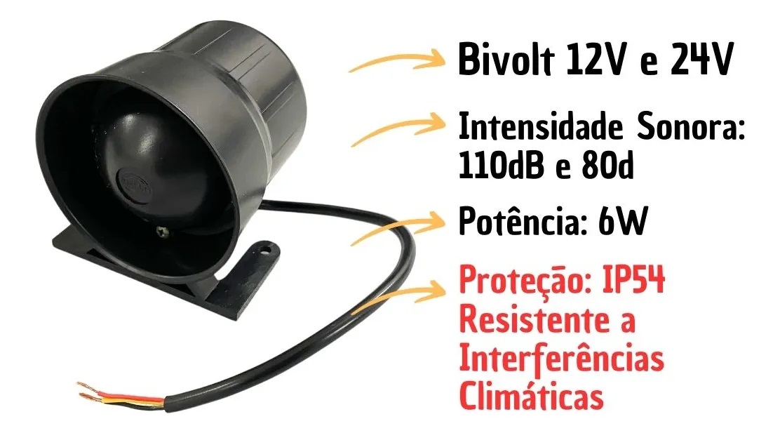 Alarme Sirene Intermitente de Marcha Ré BiVolt 12/24v