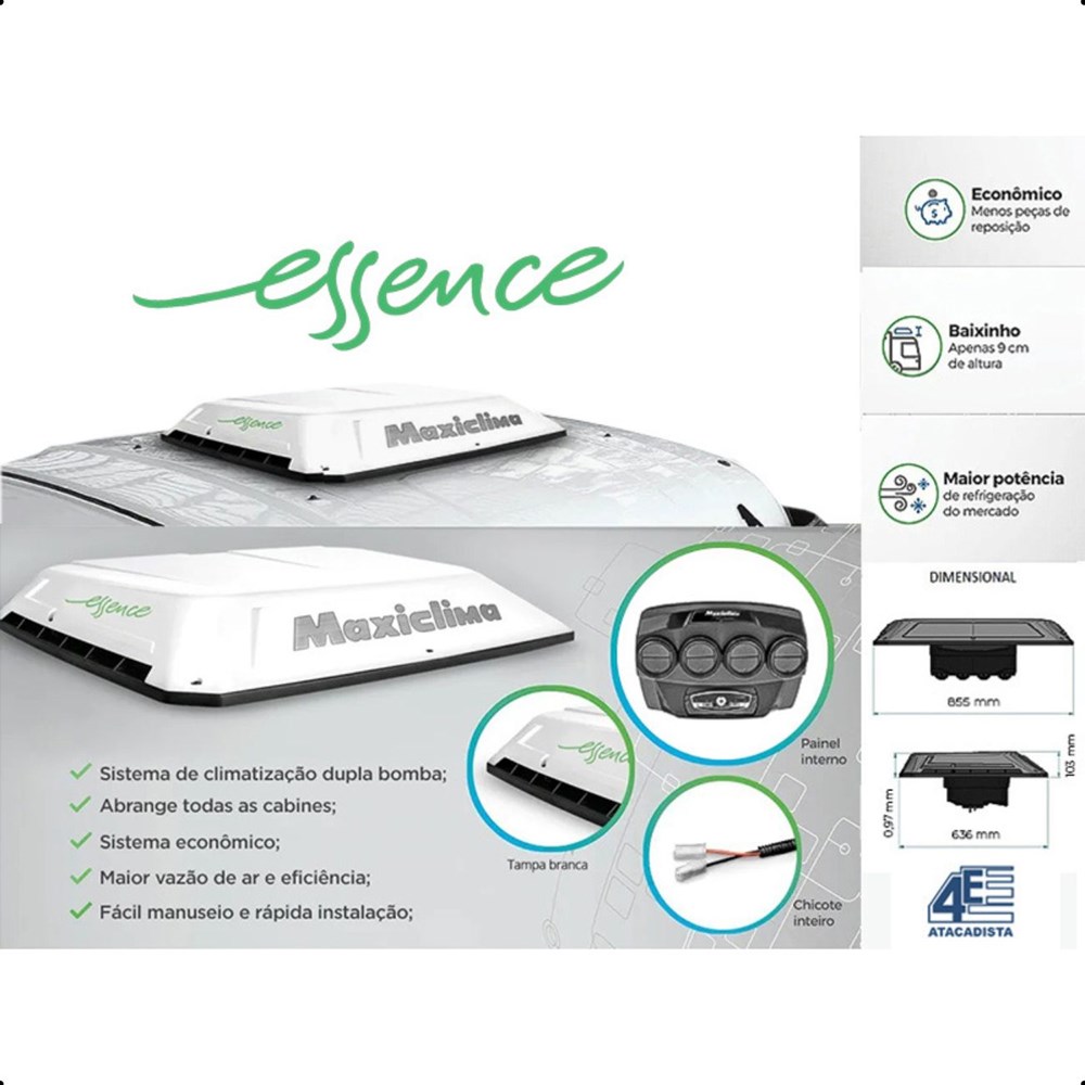 Climatizador Maxiclima Fusion Essence Caminhão Mercedes-Benz 1938S, Axor Teto Baixo - 24 Volts