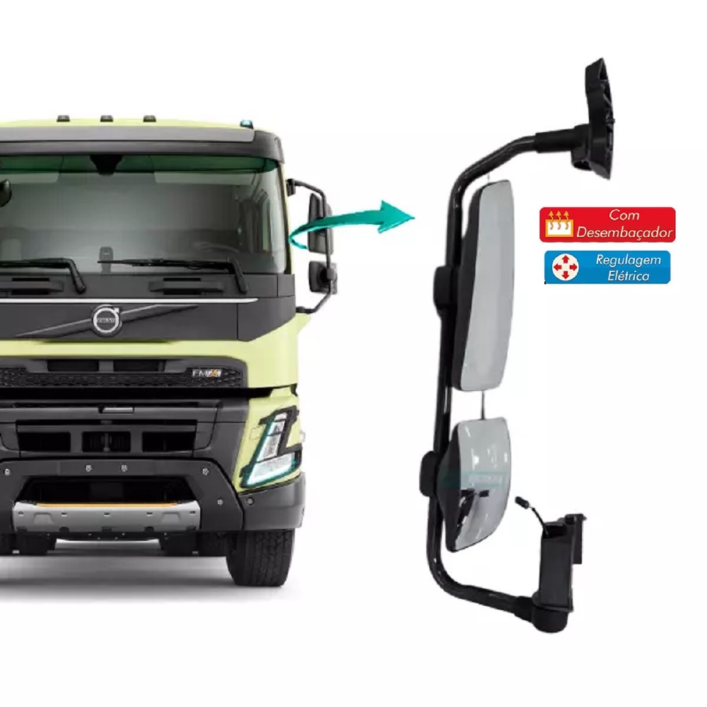 Espelho Retrovisor Caminhão Volvo FMX Após 2015 Eletrico Com Desembaçador Lado Esquerdo