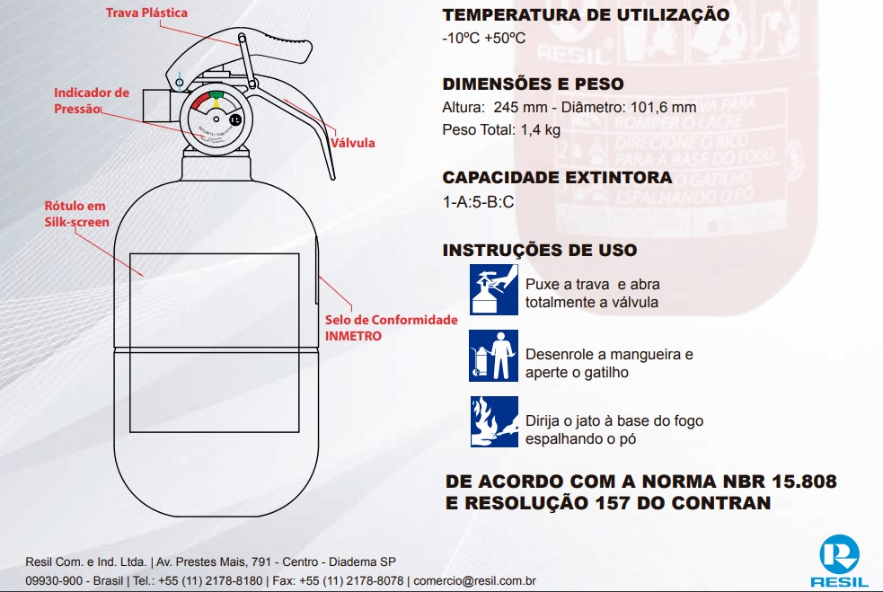 Extintor Incêndio 1Kg Pó ABC - Fiat, GM - 5 Anos de Garantia - Resil R989