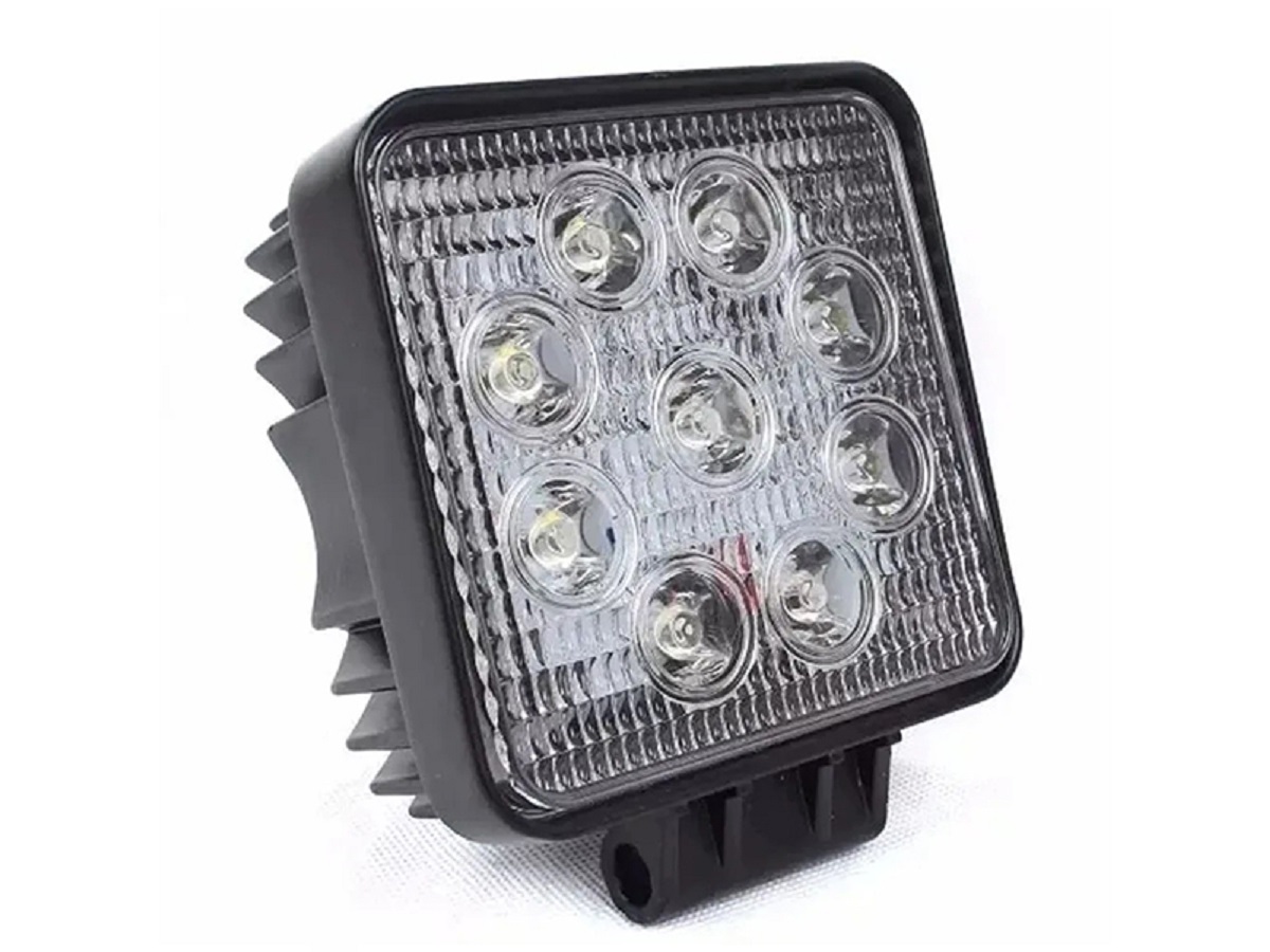 Farol Auxiliar Quadrado LED Branco (9 LEDs) 27W - Bi-Volt