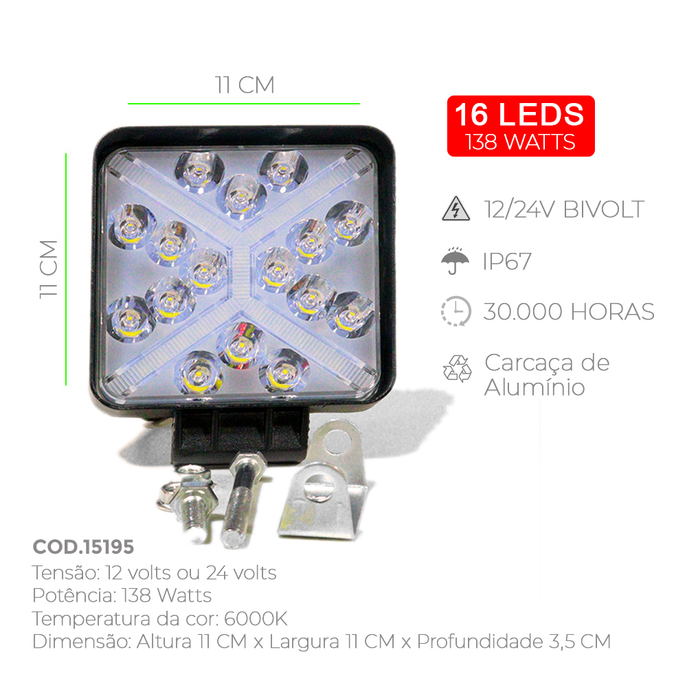Farol Auxiliar Quadrado LED X Ambar 104mm (16 LEDs) 138W