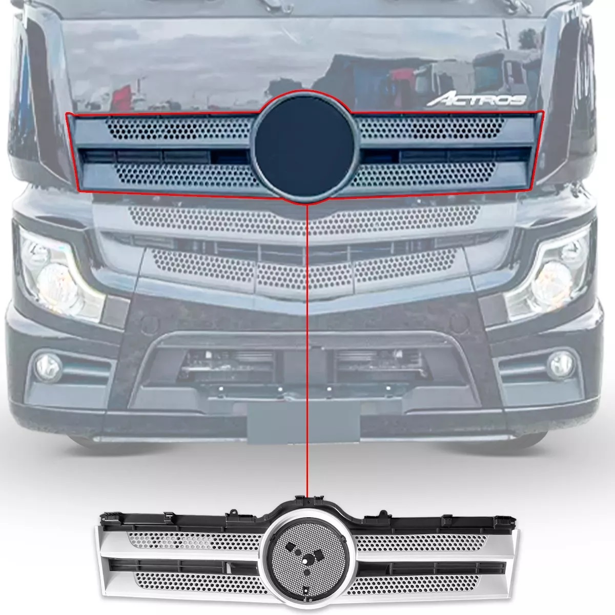 Grade Frontal Central Mercedes Actros Após 2019 Central Cabine Alta Sem Emblema - 9607500618