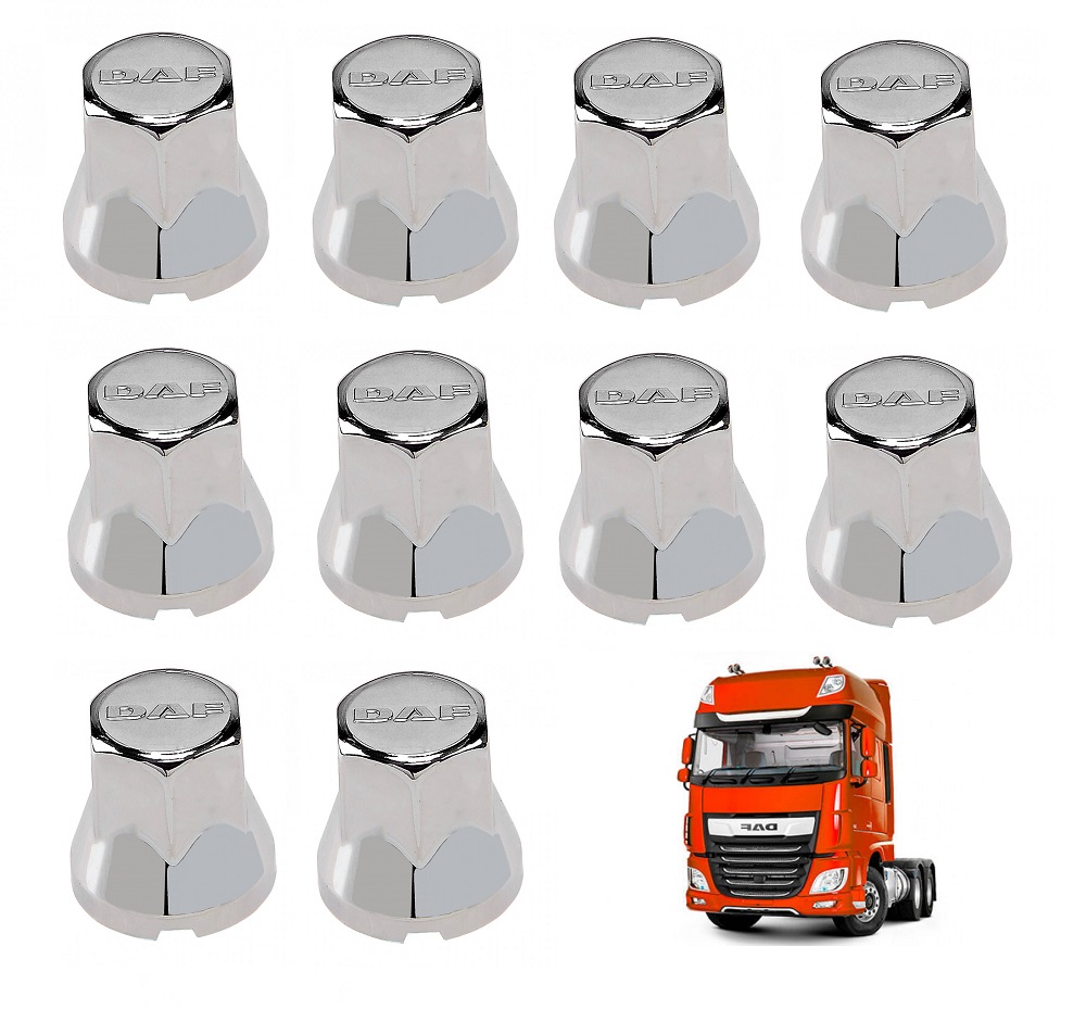 Kit 10 Capa Porca Cromada Com Logo DAF - 32mm