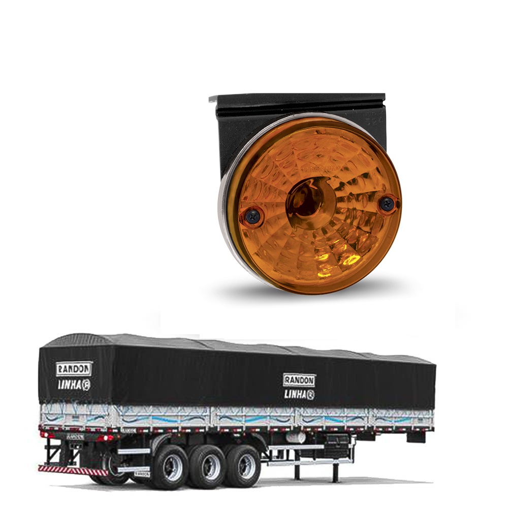 Lanterna Lateral Carreta Universal com Suporte (Lente Lisa) - Amarela