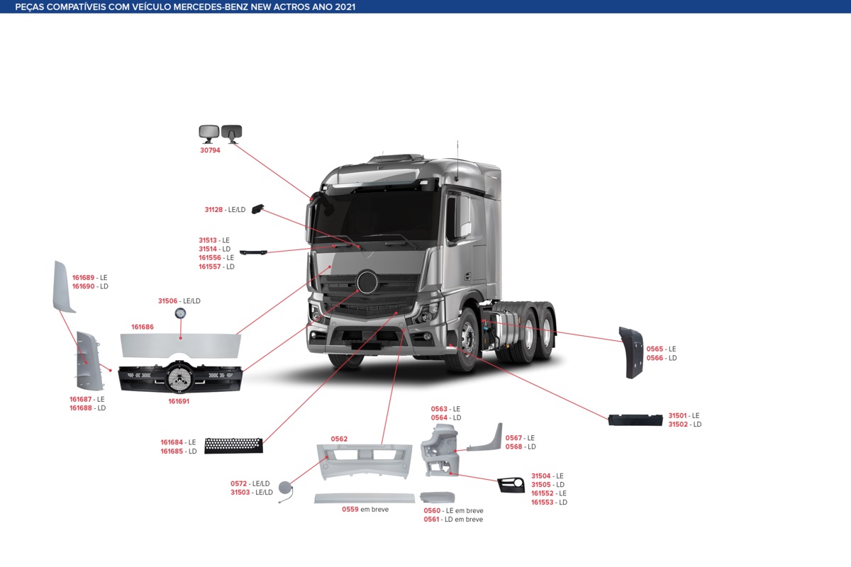 Moldura Inferior Farol Caminhão Mercedes-Benz Actros Após 2021 Cabine Baixa Lado Esquerdo - 9608805405